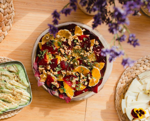 • 2 comidas diarias: brunch abundante y cena temprana. Alimentación ovo-lácteo vegetariana, con productos frescos y de proximidad, elaborada por chefs especialmente contratadas para el retiro, expertas en cocina saludable.