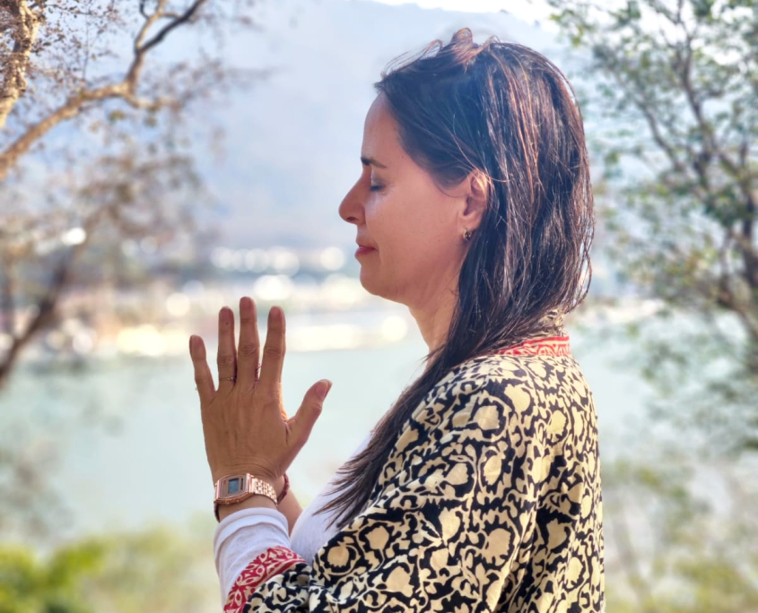 En el 2014 se forma como profesora de Anusara Yoga, estilo que le ayuda a tener una mayor comprensión del cuerpo como vehículo para conectar con la esencia. Su interés por el yoga y la meditación le lleva a practicar otros estilos como Iyengar o yoga terapéutico, y a estudiar terapias alternativas, como el masaje tradicional tailandés, o realizar una formación de Ayurveda (certificada por Cofenat). Desde el 2017 viaja cada año a India, donde además de practicar con diferentes maestros, estudia meditación, filosofía vedanta y todo lo relacionado con la cultura hindú.